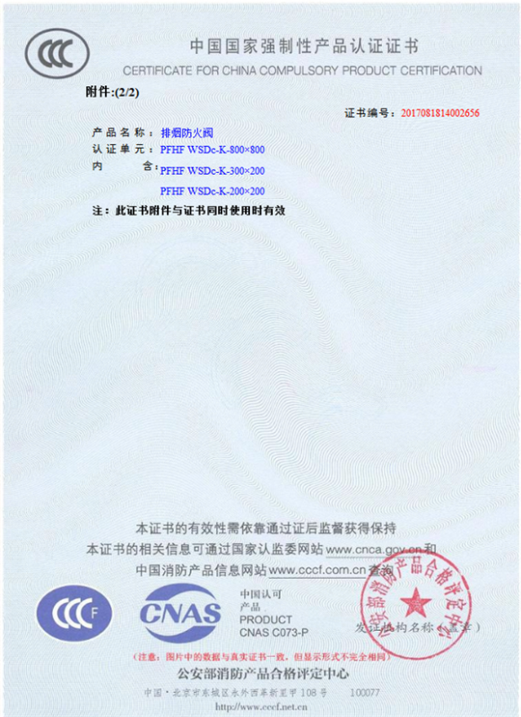 產(chǎn)品全通過(guò)國(guó)家消防檢測(cè)中心檢測(cè),獲得CCC證書(shū)